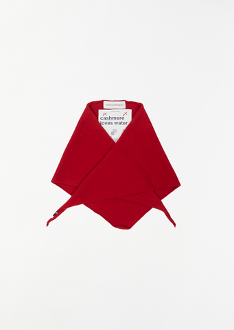 Brand Signature Piece — Extreme Cashmere pepper red triangle bandana neck scarf in a stretch cashmere blend knit. Features roll edge finish at top, clean edge finish at sides and label logo on inside with signature multicolored stitch detailing at the top left.