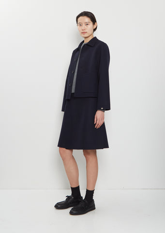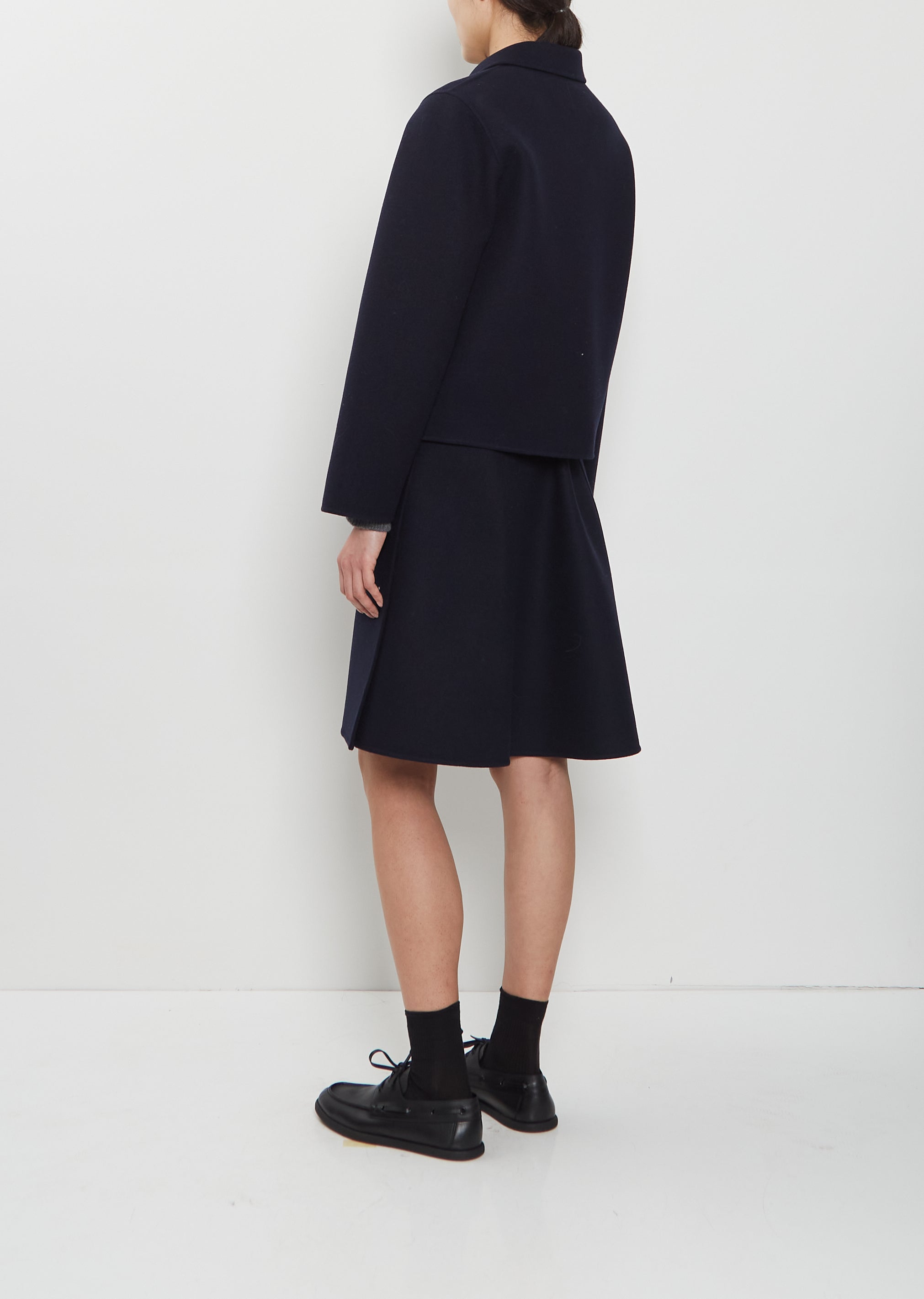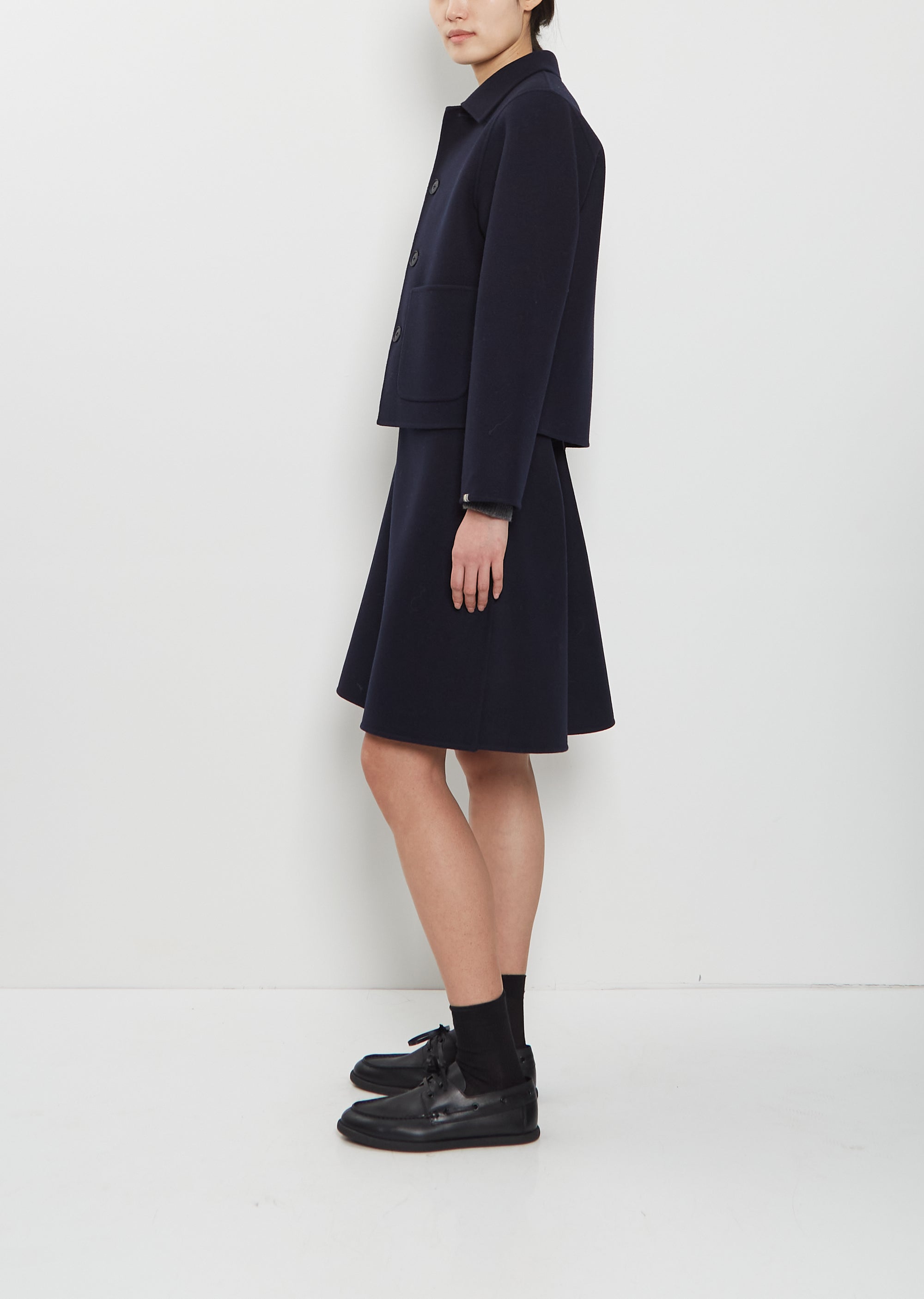 Extreme Cashmere navy compact workwear-inspired jacket with a shrunken fit, crafted from double-faced cashmere. Features a pointed collar, two patch pockets and a five-button Corozo button closure. Crafted with great attention to detail, this cashmere jacket is largely handmade. Compact, relaxed fit.