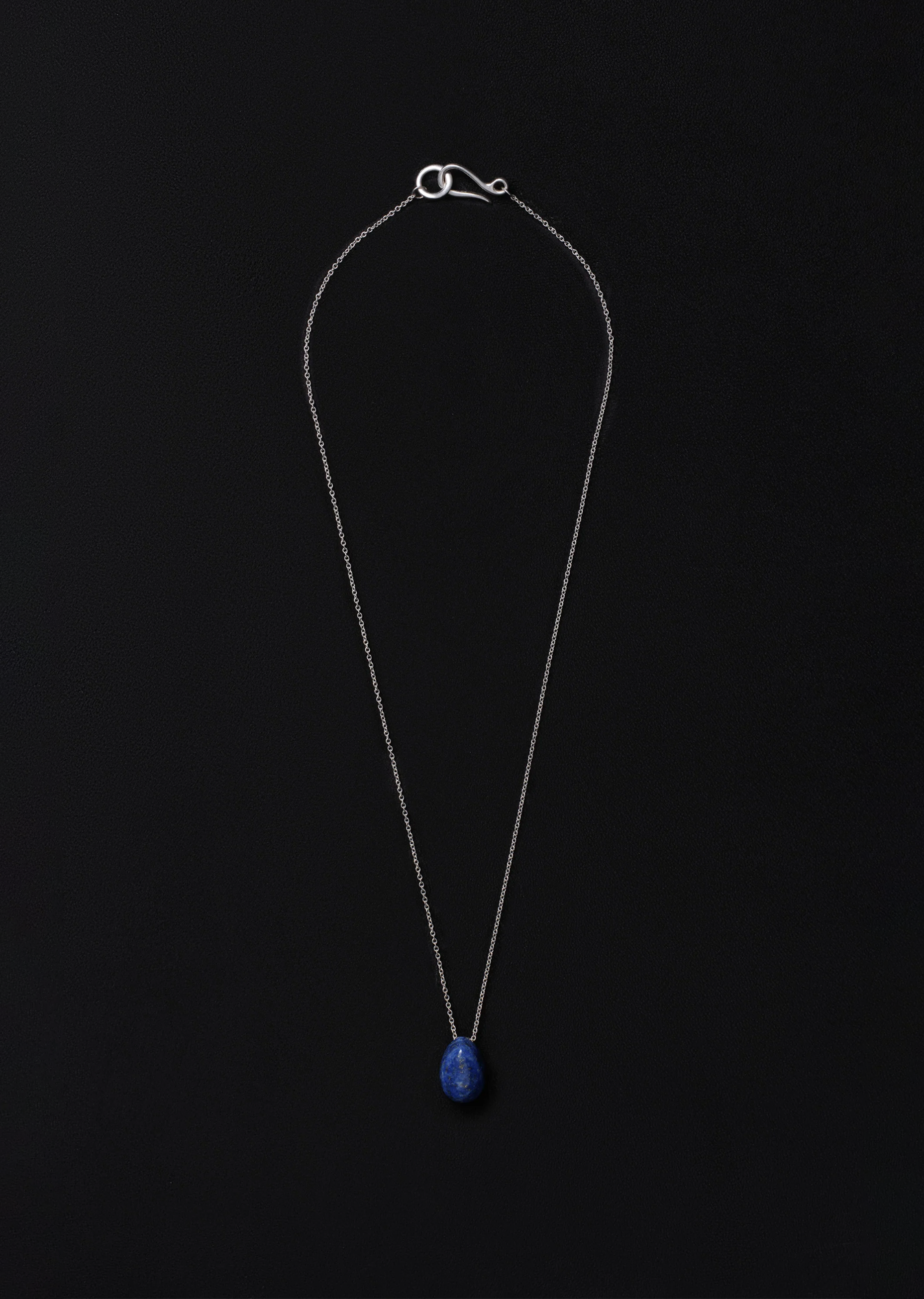Sophie Buhai signature egg pendant necklace featured in hand carved delicate lapis strung on a delicate 16" chain.
