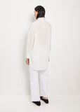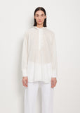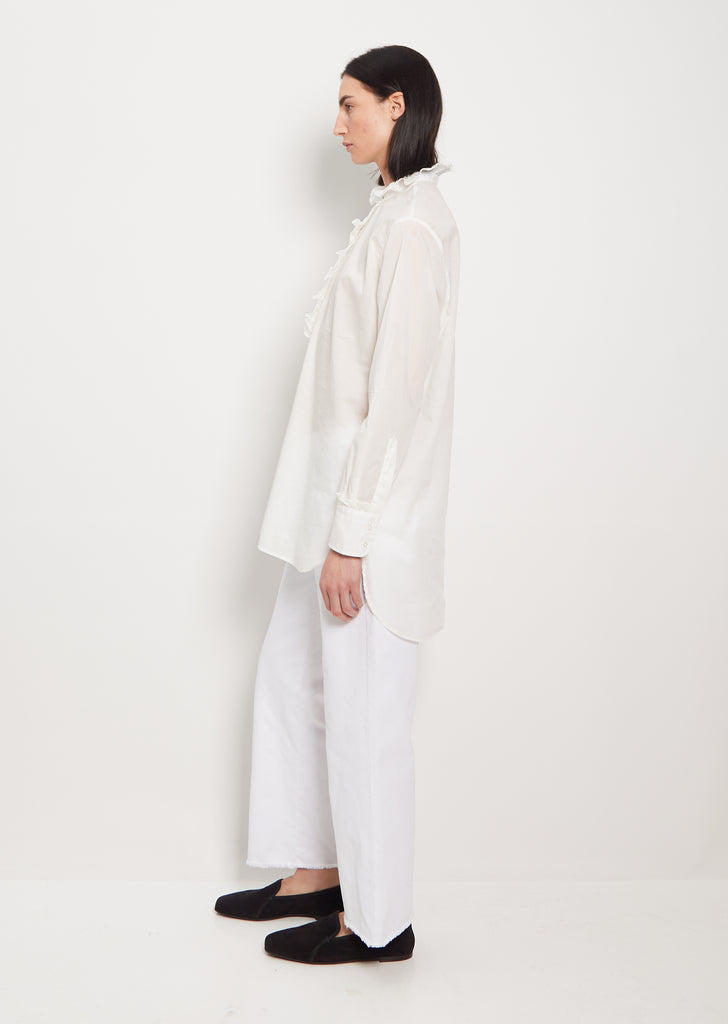 Massimo Alba bianco shirt in lightweight cotton voile. Features a ruffled collar, three quarter neckline, and high cuffs.