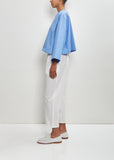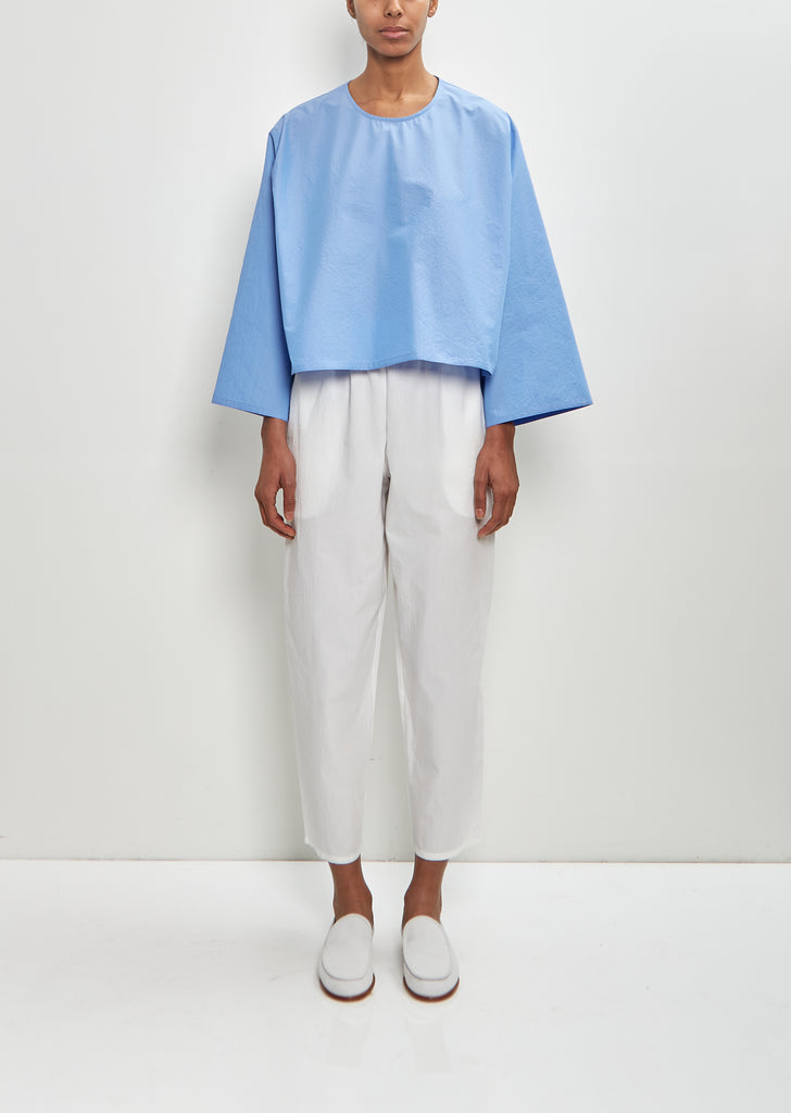 Dušan pullover top with wide long sleeves in sky blue cotton. Features a round neckline and slightly dropped shoulders. Loose, relaxed fit.
