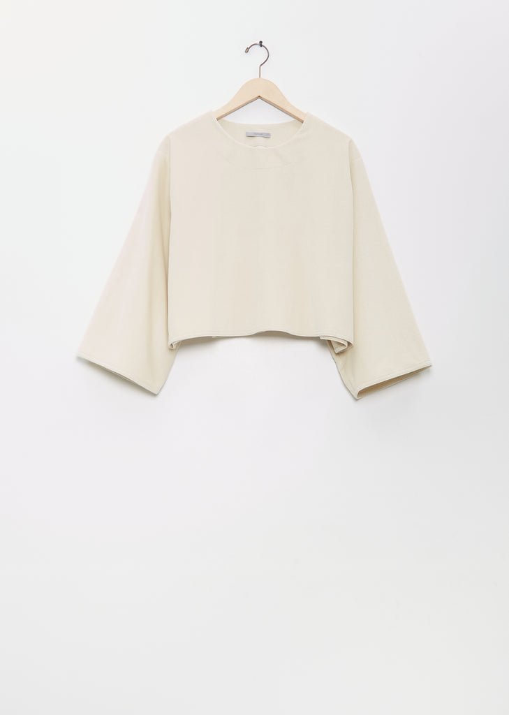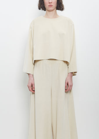 Dušan pullover top with wide long sleeves in ivory cotton and silk blend corduroy. Features a round neckline and slightly dropped shoulders. Loose, relaxed fit.