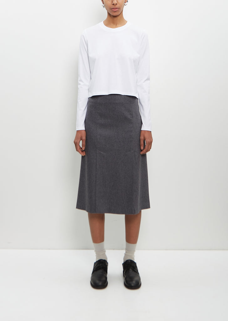 Loulou Studio white signature slightly cropped long sleeve tee with a round neck in organic cotton. Features a boxy fit and clean wide hem finishing.