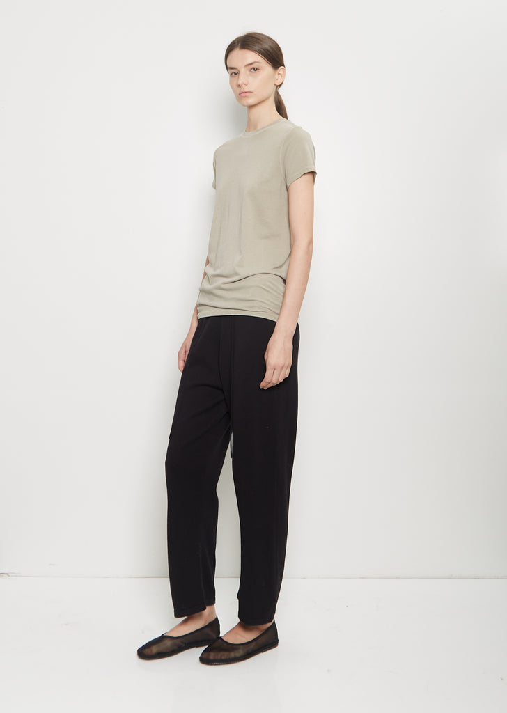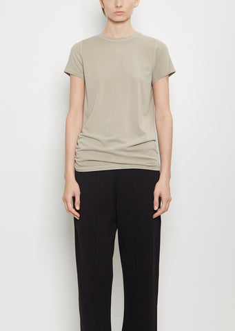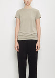 Lauren Manoogian washed clay short sleeve tee with a crew neckline in a cotton, tencel, and linen blend jersey. Features set-in sleeves, an asymmetrical side seam, and a ribbed trim finish at neckline.