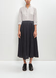 Pas de Calais black A-line skirt with a pleated waist and adjustable interior drawstrings in lightweight washed linen with a crinkled effect. Features a clean waist, a single side seam pocket and a nacre-hued buttons closure at side. Comes unlined.