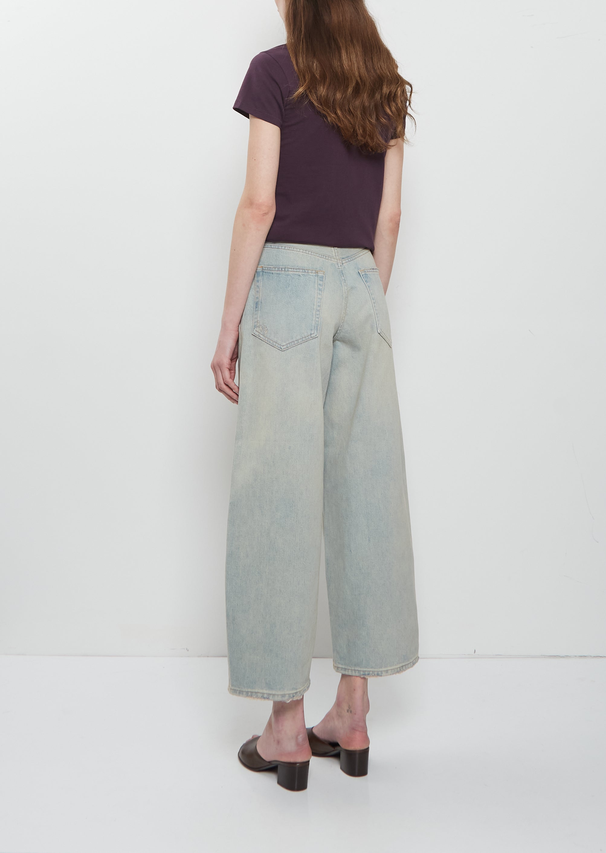 6397 light blue high-rise jean with cropped, wide legs in cotton denim with a sand wash effect. Features 5-pocket construction, belt loops and button and zip-fly fastening. Relaxed fit.