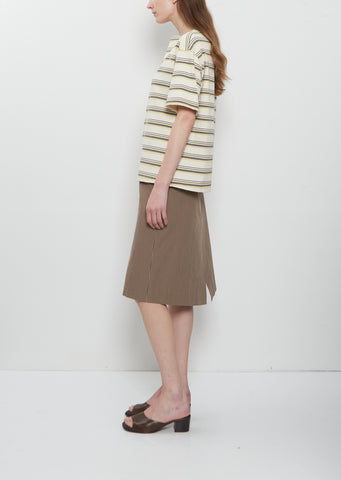 6397 cream stripes tee with a boat neckline with visible contrast cover stitch in soft dense Japanese cotton jersey. Features dropped shoulders and loose short sleeves. Relaxed, boxy fit.