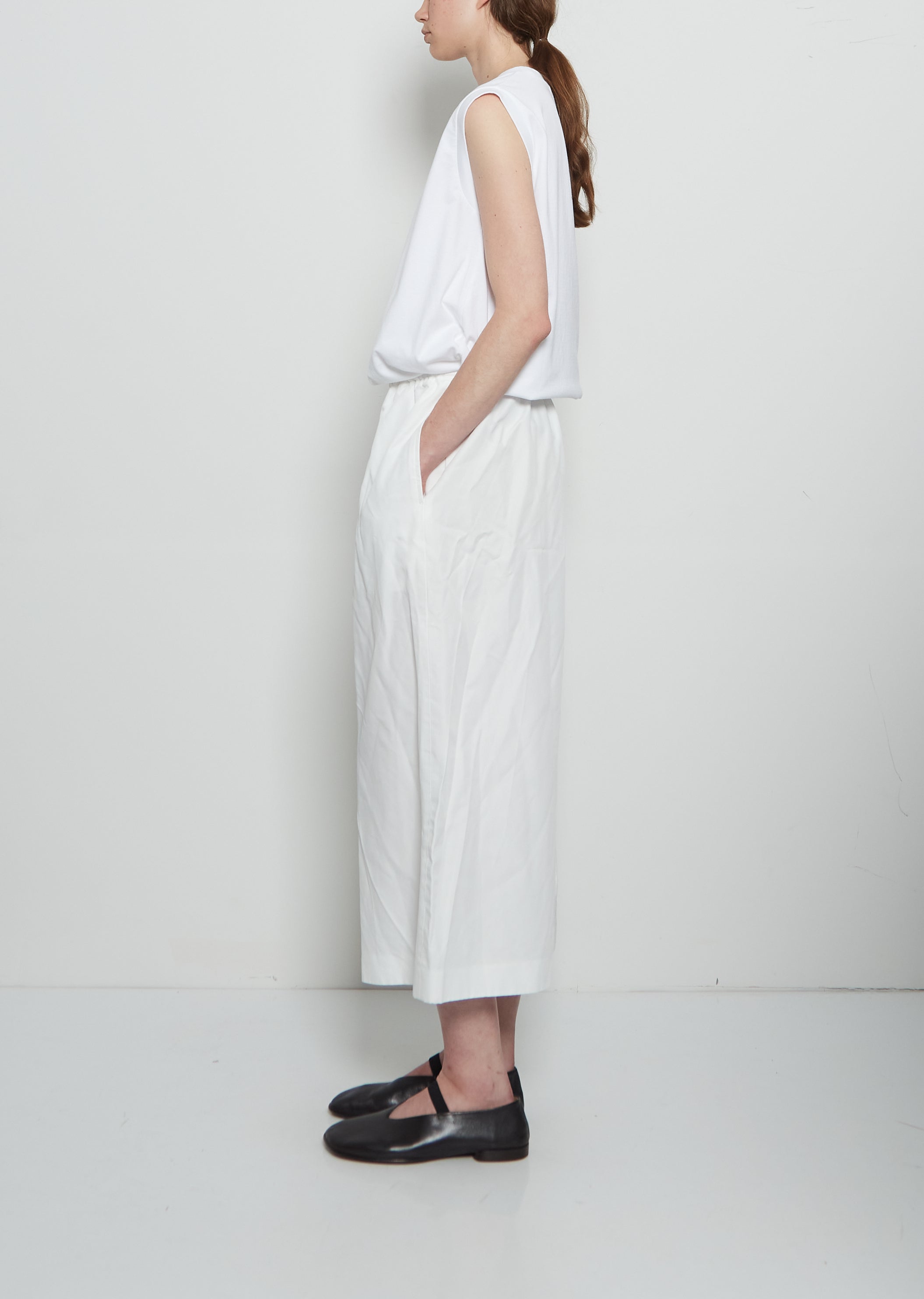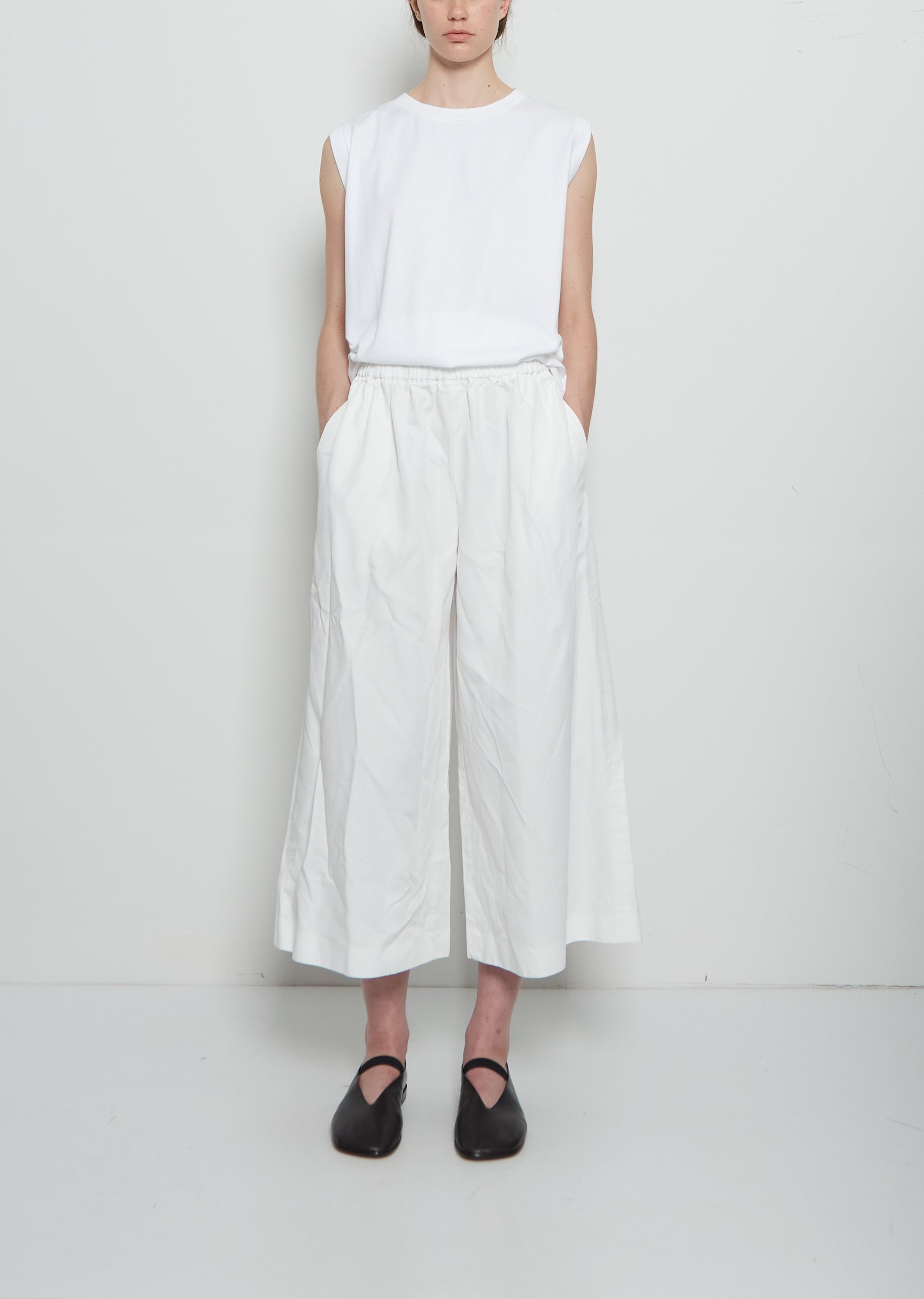 Twil Tech Drawstring Wide Pant — White