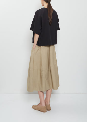 Labo.Art dark beige pull-on A-line skirt with an elastic waistband and side seam pockets in crisp cotton poplin. Relaxed fit.