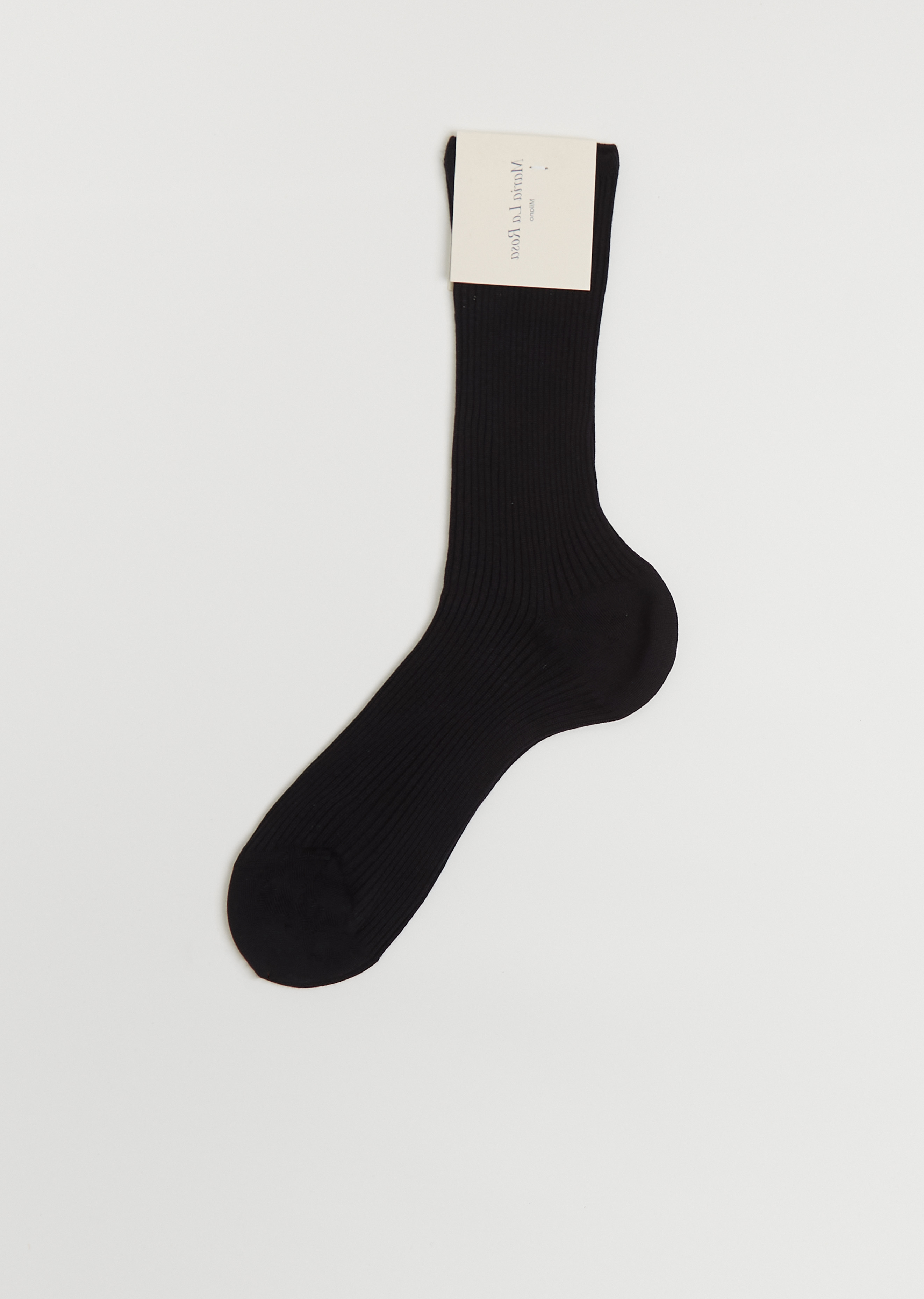 Maria La Rosa black trouser socks in a delicate and soft organic cotton ribbed knit with reinforced toe, heel, and top.