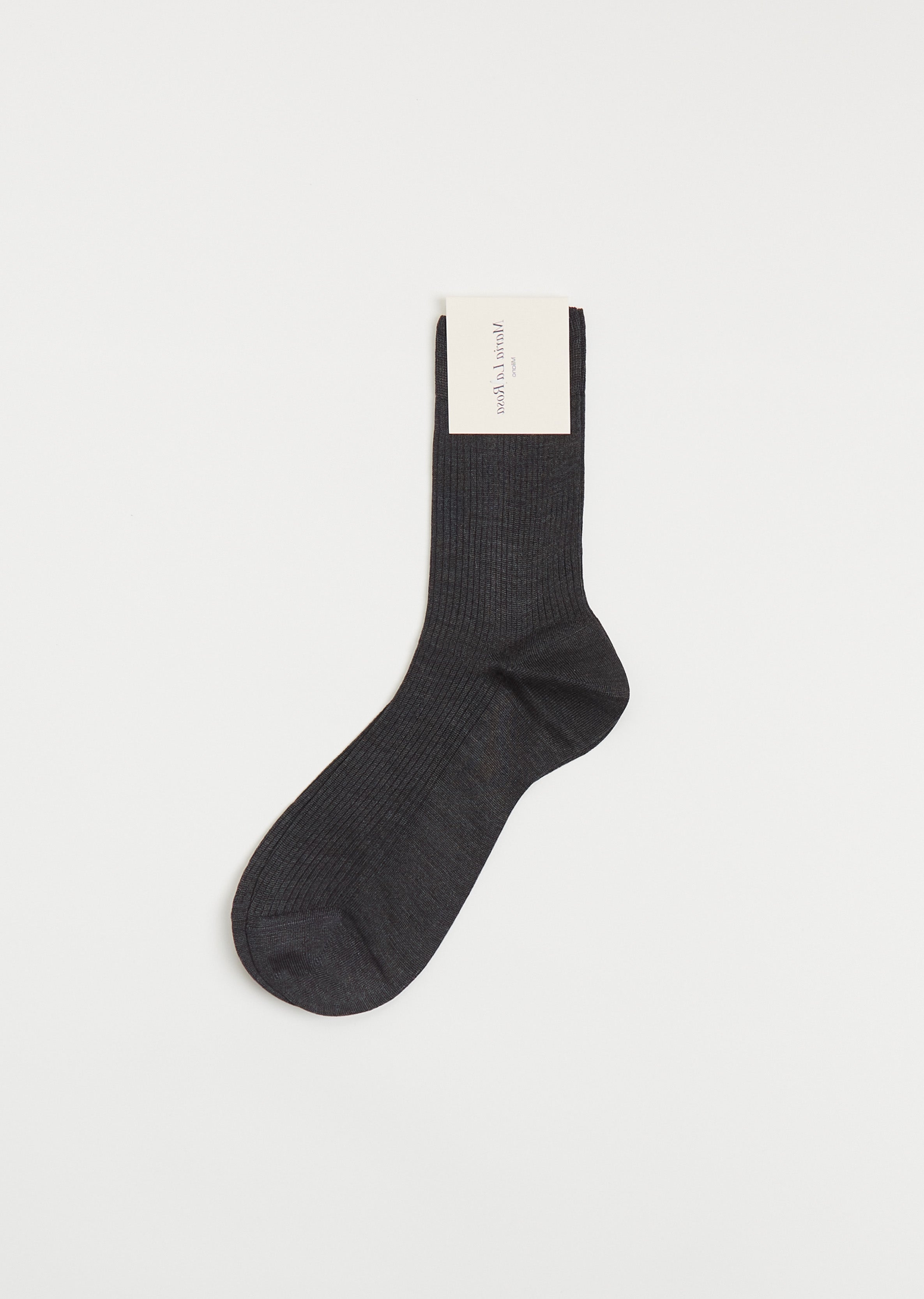 Maria La Rosa dark grey mid-calf socks in a delicate and soft silk blend ribbed knit with reinforced toe, heel, and top.
