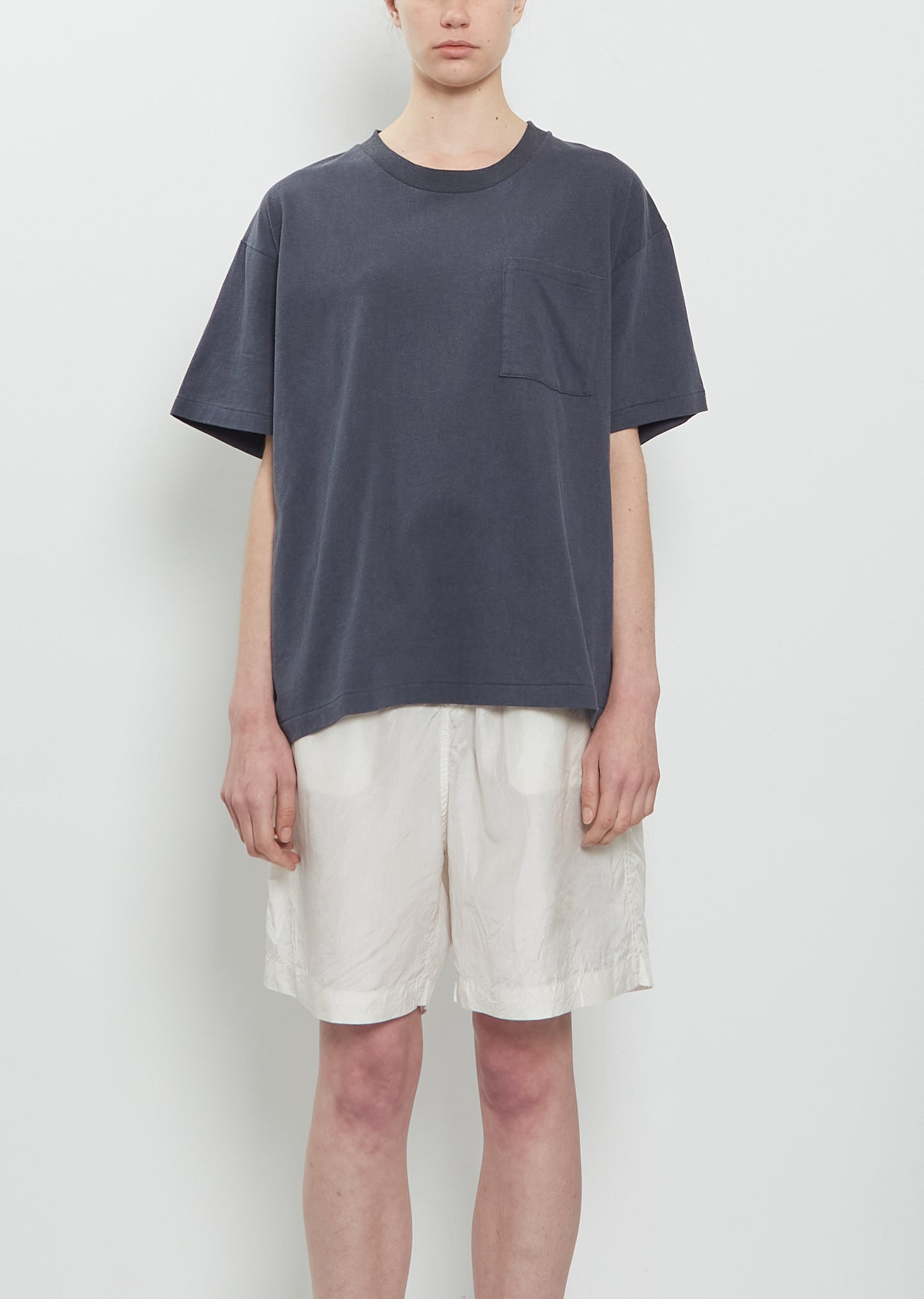 Toujours faded navy classic t-shirt with a single patch pocket at chest in a dense cotton jersey.