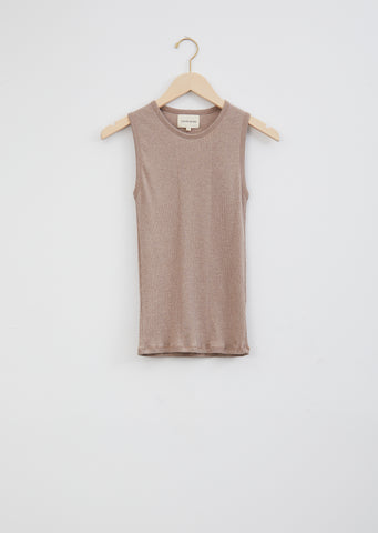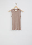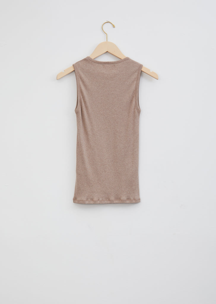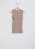 Loulou Studio Fatu Debardeur Top in camel color, a light-beige 100% cotton rib jersey tank featuring a wider rib at center front.