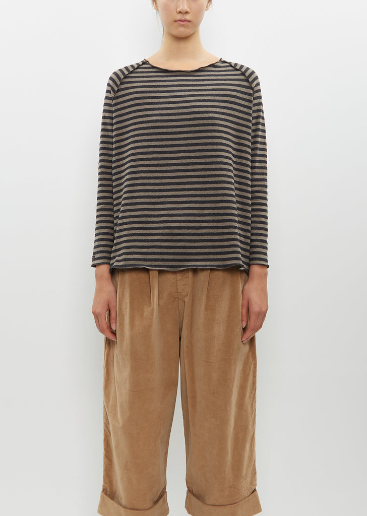 Album di Famiglia dark grey stripes long sleeve sweater with a boat neckline in cotton blend jersey. Features raglan sleeves and overlock finish throughout.