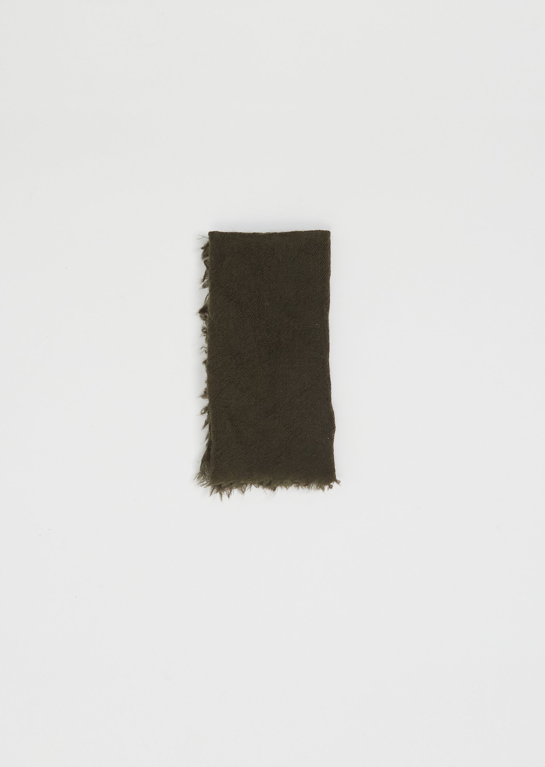 Frenckenberger dark olive green bandana scarf with a square shape in lightweight and soft woven cashmere. Finished with frayed edges throughout.