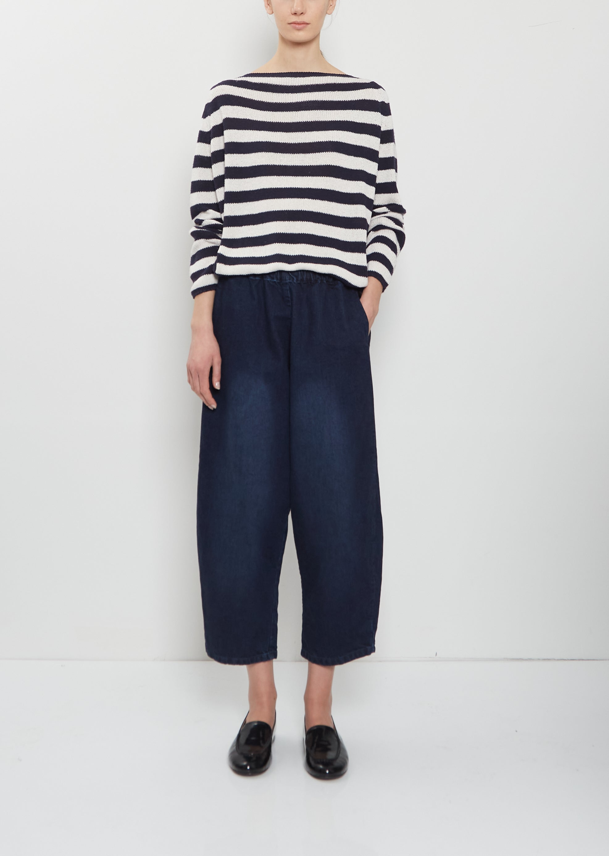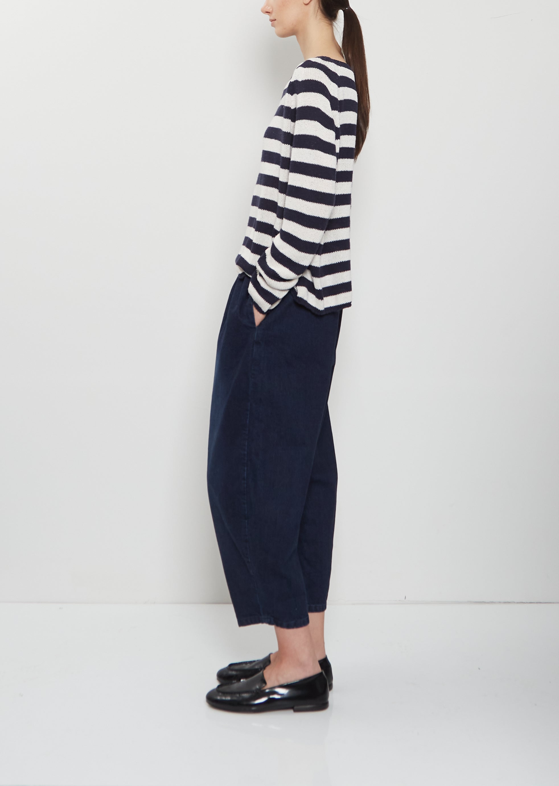 Worn with: Boat Neck Silk Sweater — Stripes and Mandolo Mocassino Patent Loafer