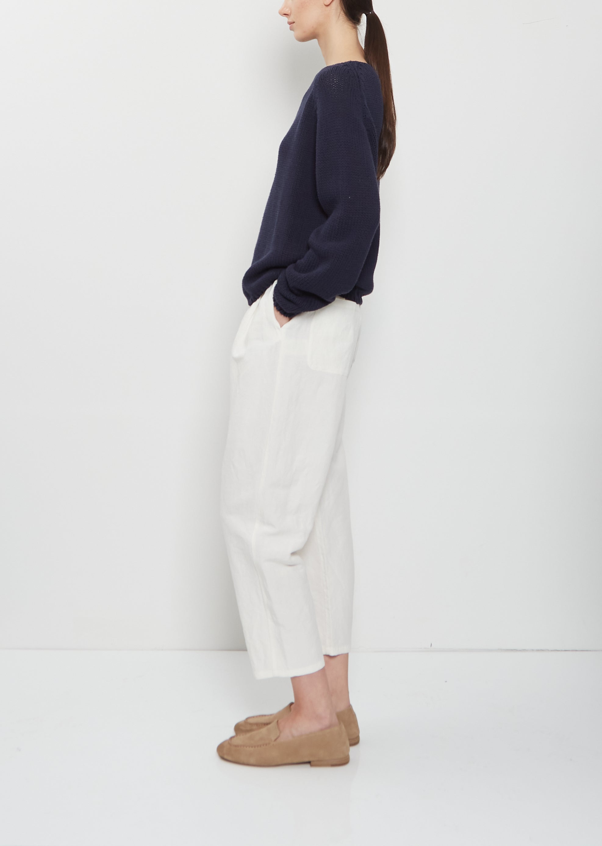 Linen Tapered Trousers — Meringue