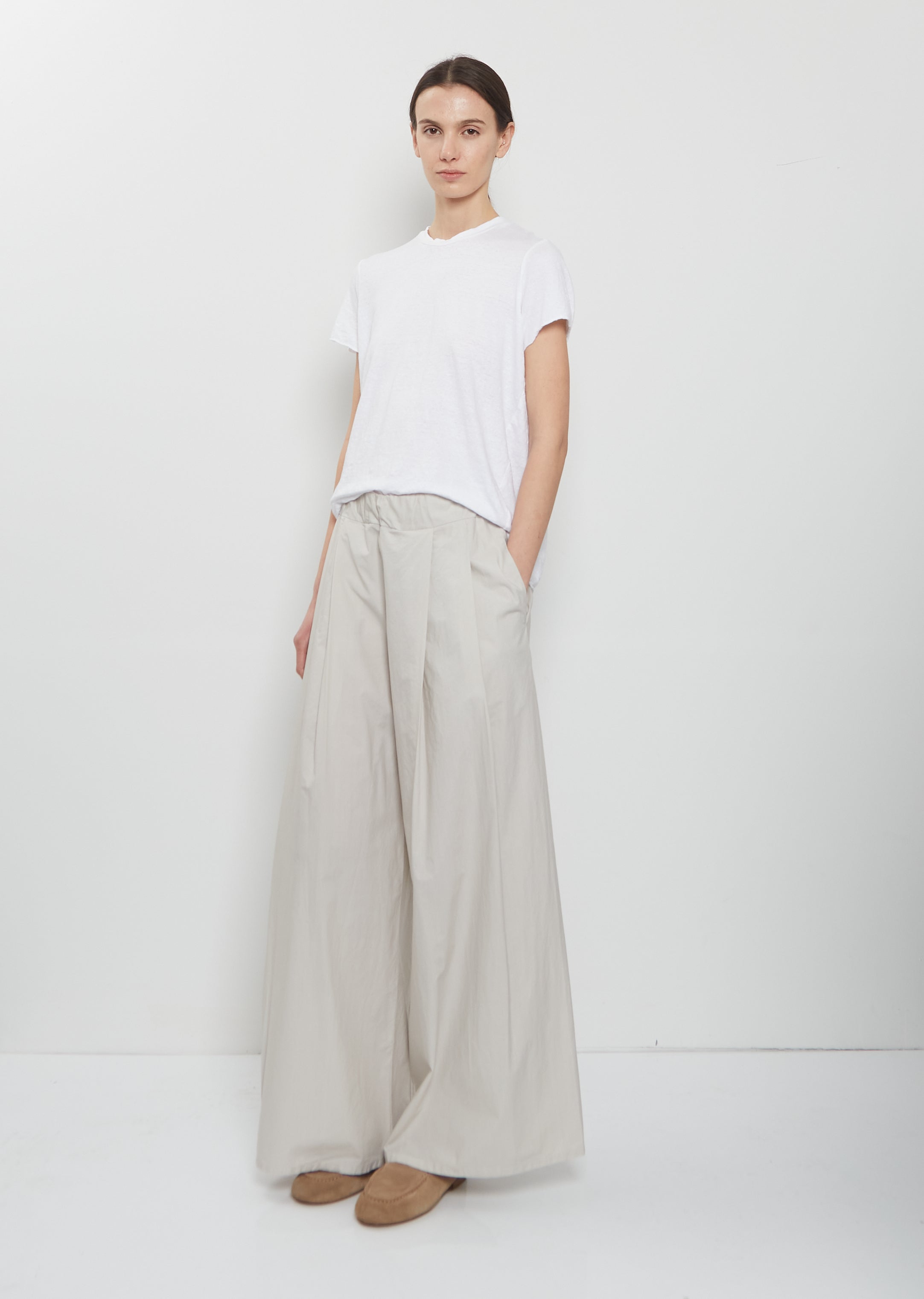 Labo.art light grey signature wide leg trousers with a pleated front and wide elasticated waist in cotton poplin. Concealed side seam pockets. Easy, pull on fit.