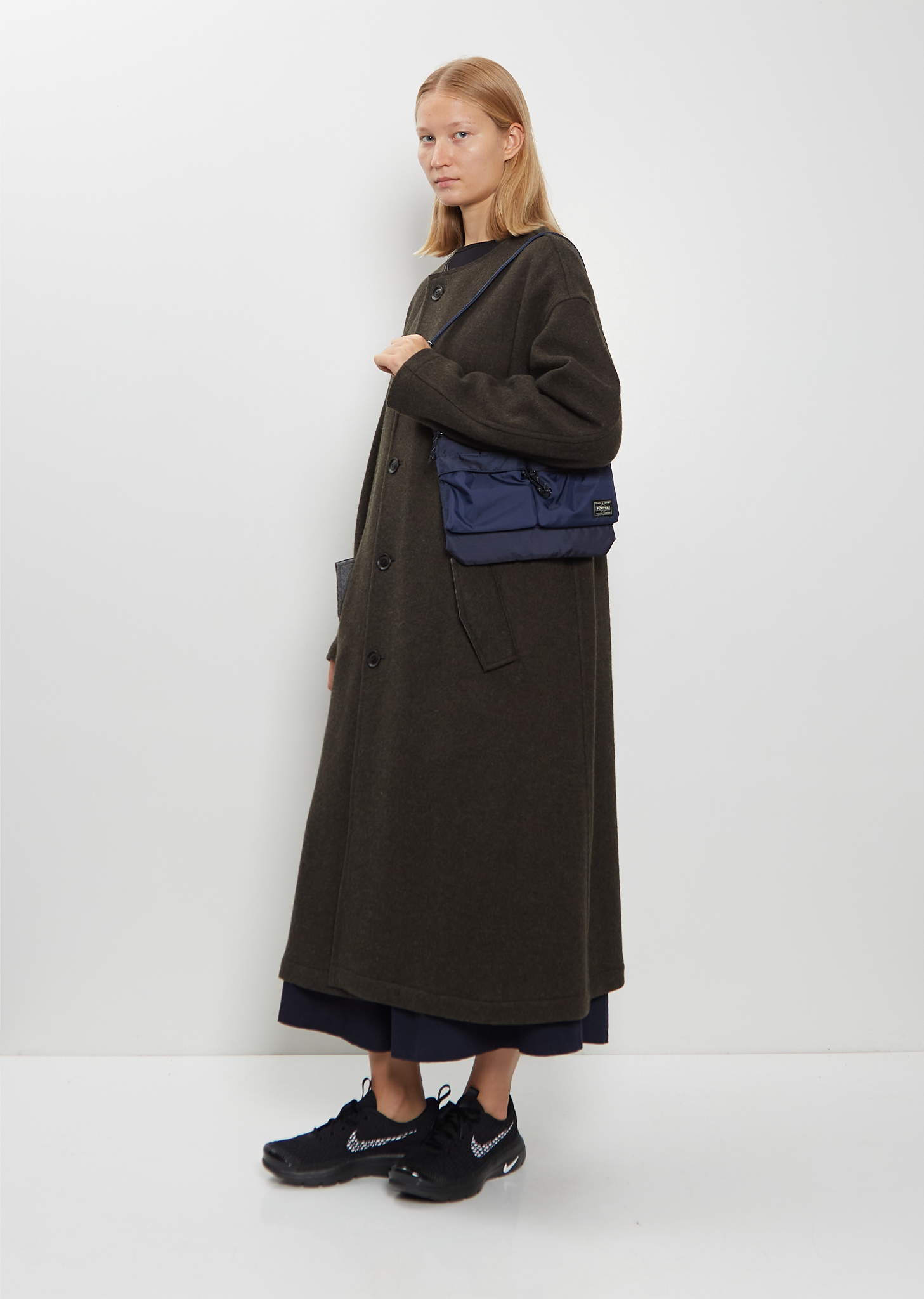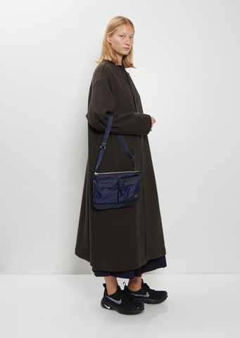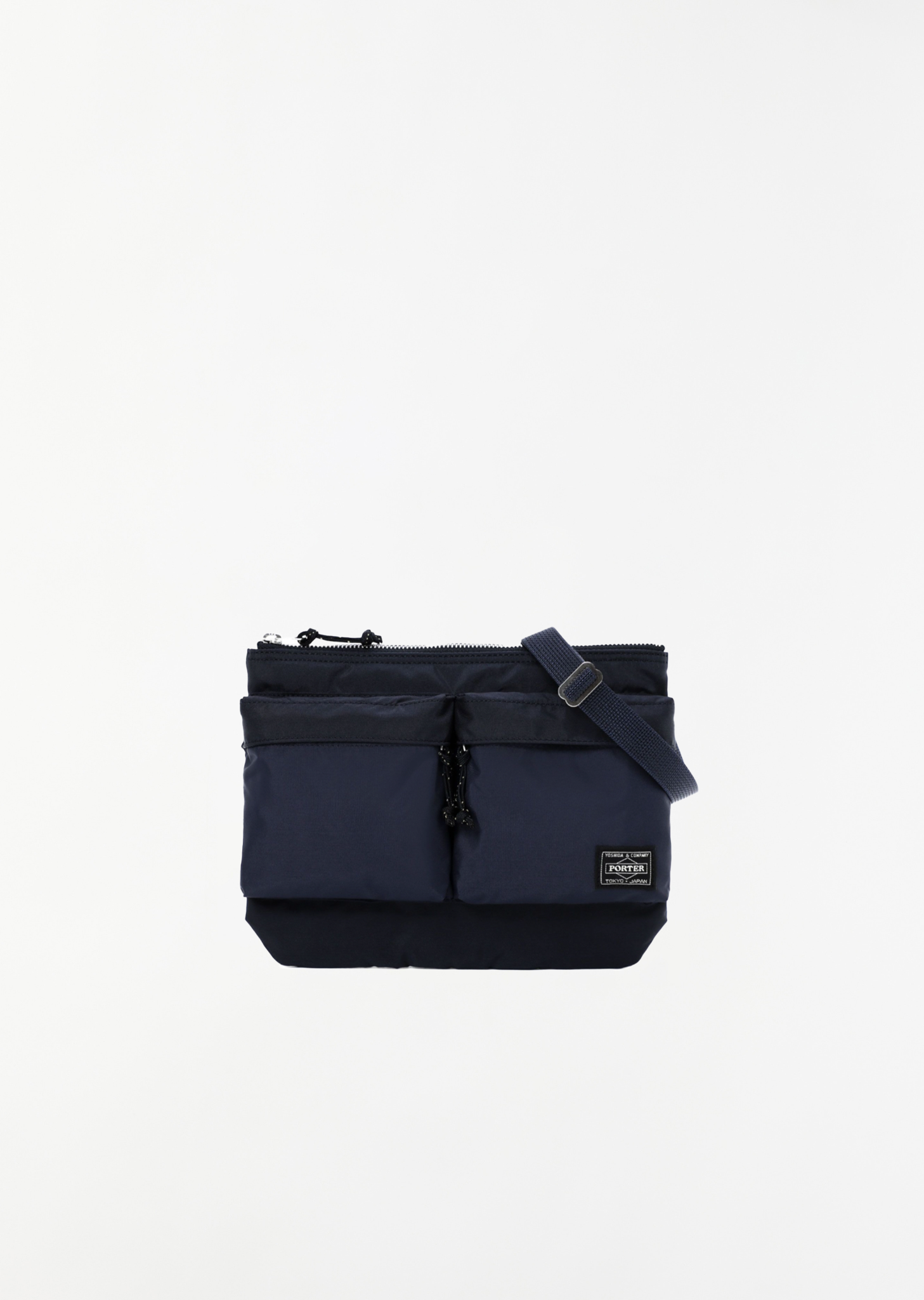 Porter - Yoshida & Co black shoulder bag with two exterior zipper pockets in technical nylon. Features an adjustable shoulder strap, an internal removable pouch, black-tone metal hardware and a top zipper closure. Finished with a bright orange nylon lining.