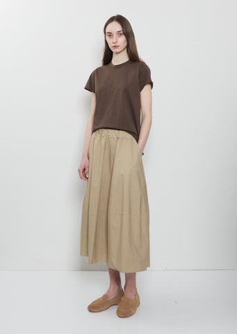 Labo.Art dark beige pull-on A-line skirt with an elastic waistband and side seam pockets in crisp cotton poplin. Relaxed fit.