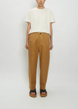 Sofie D'Hoore colonial yellow straight leg pant with an elastic waistband and button fly in a woven cotton twill.