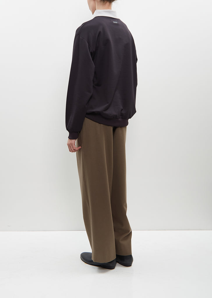 ssstein dark navy long sleeve shirt with a contrasting light grey ribbed collar in cotton and nylon blend. Features slightly dropped shoulders and a rib trim at cuffs and hem.