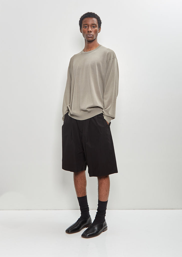 Wool Silk Knit Tucked Long Sleeve — Greige