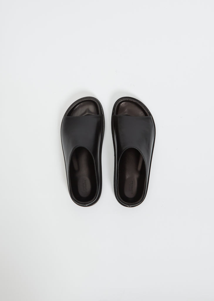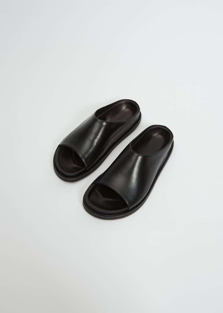 Studio Nicholson black open-toe slip-on slide sandal in an Italian calf leather.