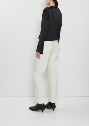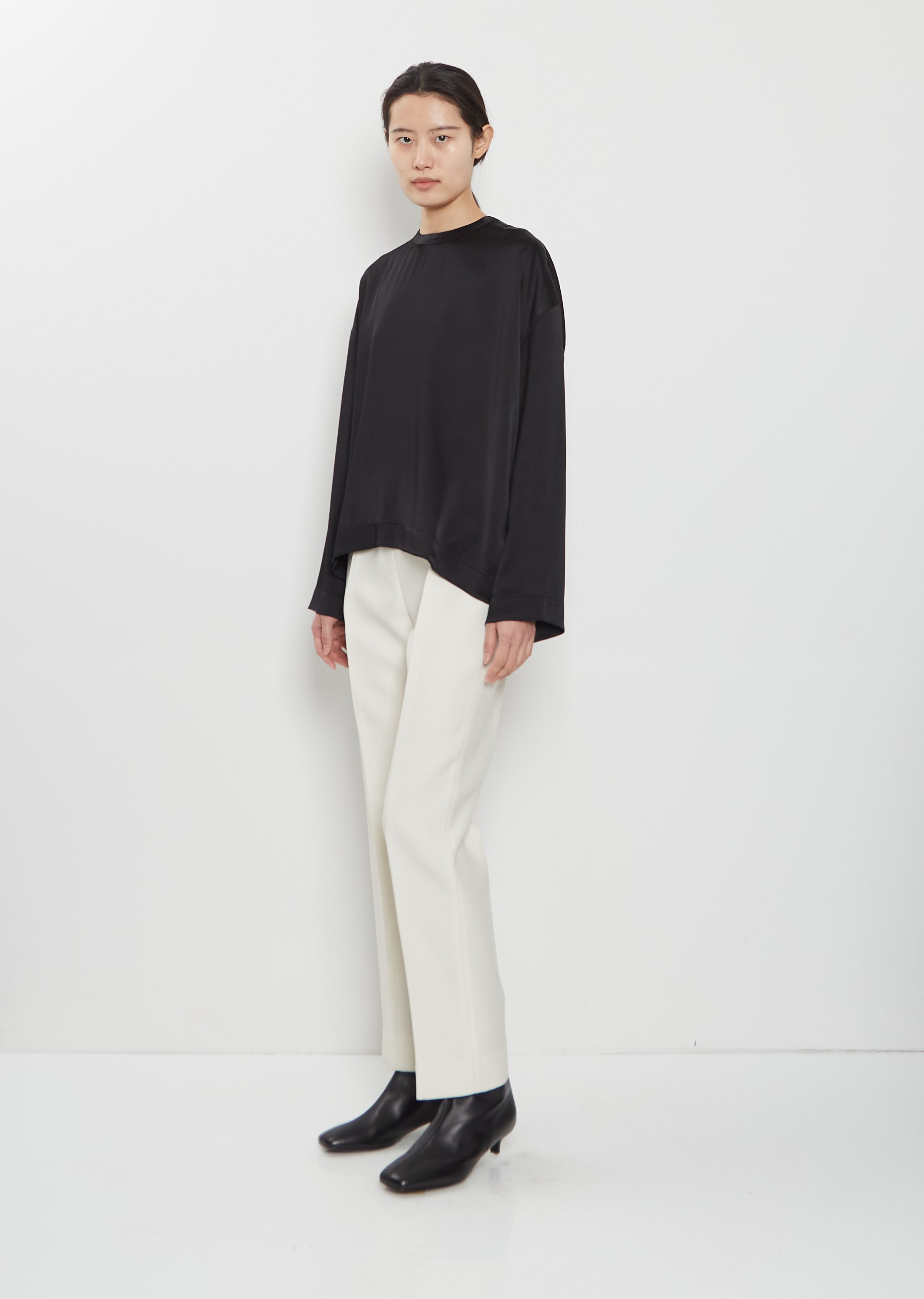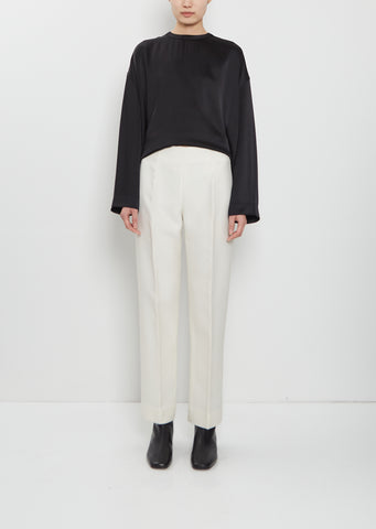 Toteme sharp evening trousers cut with an impeccable slim silhouette emphasized by press-creased legs. Concealed side zipper closure.