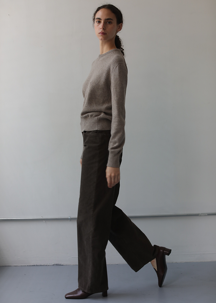 The Row coffee heeled loafer in vegetable-tanned leather with a square toe, a comfortable block heel and leather lining.