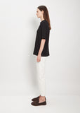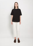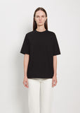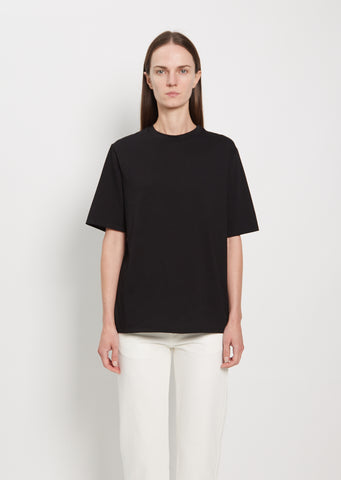 The Row black oversized short-sleeved tee in soft organic Pima cotton with boxy fit and signature center back detail.