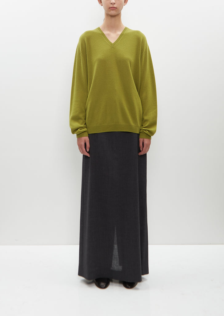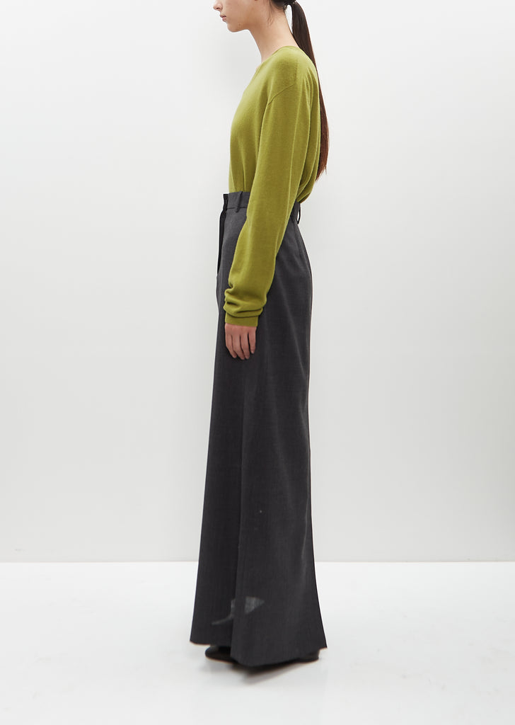 The Row charcoal grey long skirt with a slight A-line silhouette in soft fluid wool. Features a tailored waistline, belt loops, concealed side seam pockets and a slit at center back. Button, hook and zip-fly fastening. Regular fit.