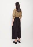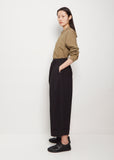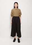Toogood signature voluminous drop crotch trouser with front pleats, an elasticated waist and cropped, turned-up cuffs in cotton. This unisex style features an inner drawstring at the waist, concealed side seam pockets and single back patch pocket.