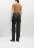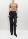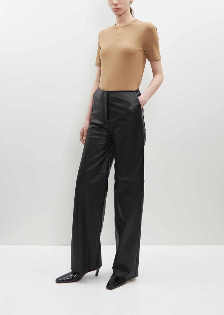 Totême black clean front trousers with panel construction in nappa leather. Straight silhouette with a relaxed fit.