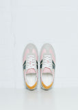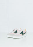 • Grey suede toe with pink, beige and green stripes