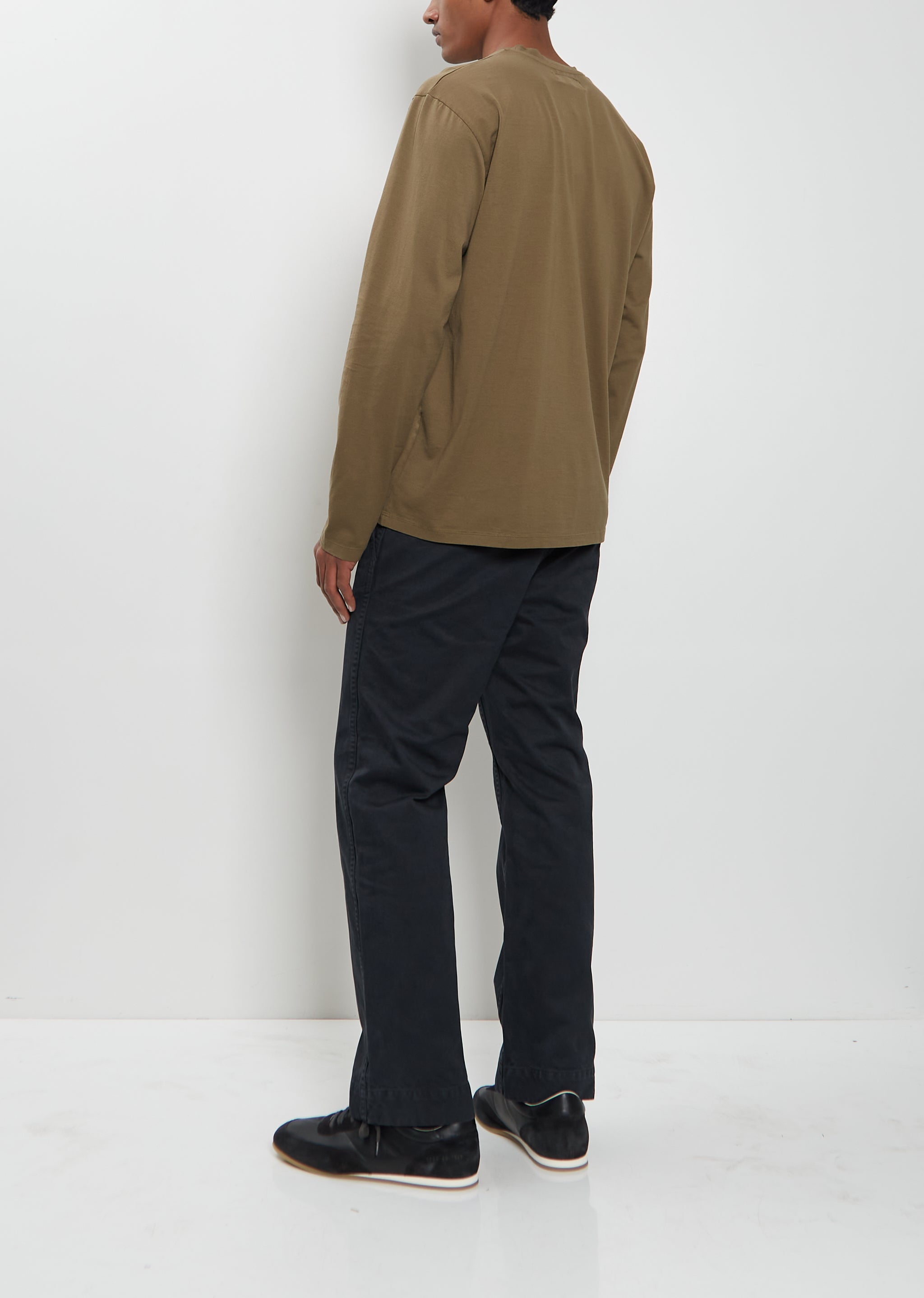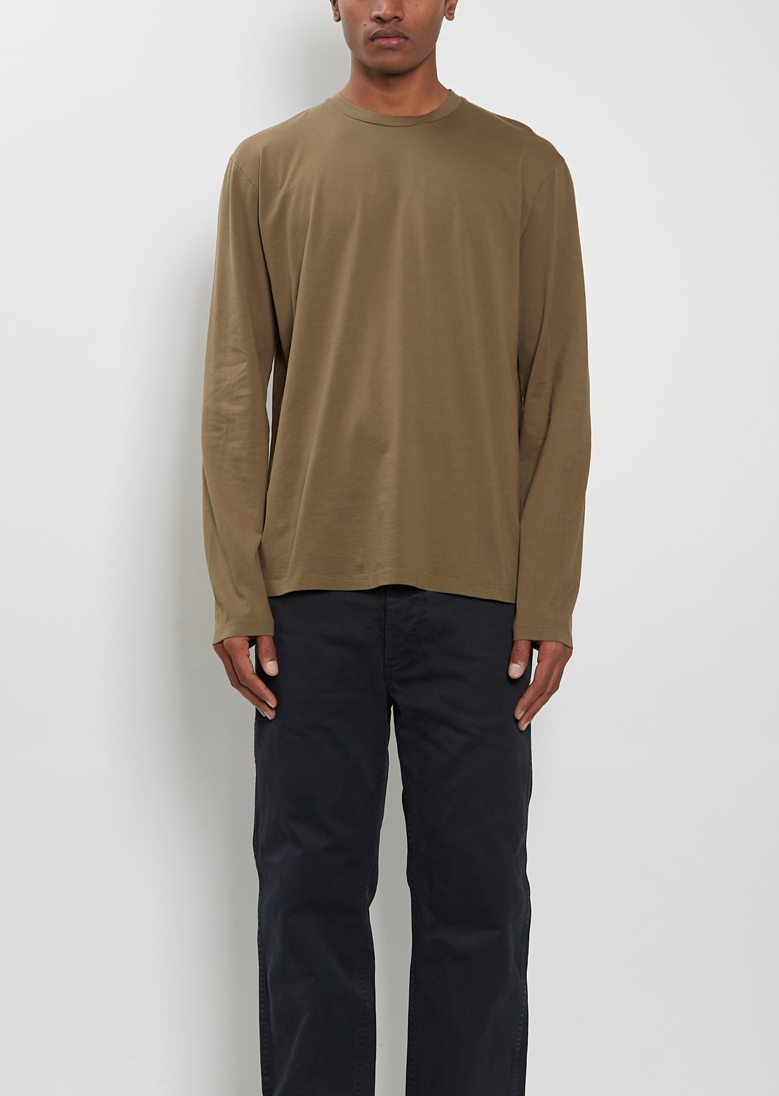 Labo.art khaki long sleeve tee with a round neckline and slightly dropped shoulders in cotton jersey.