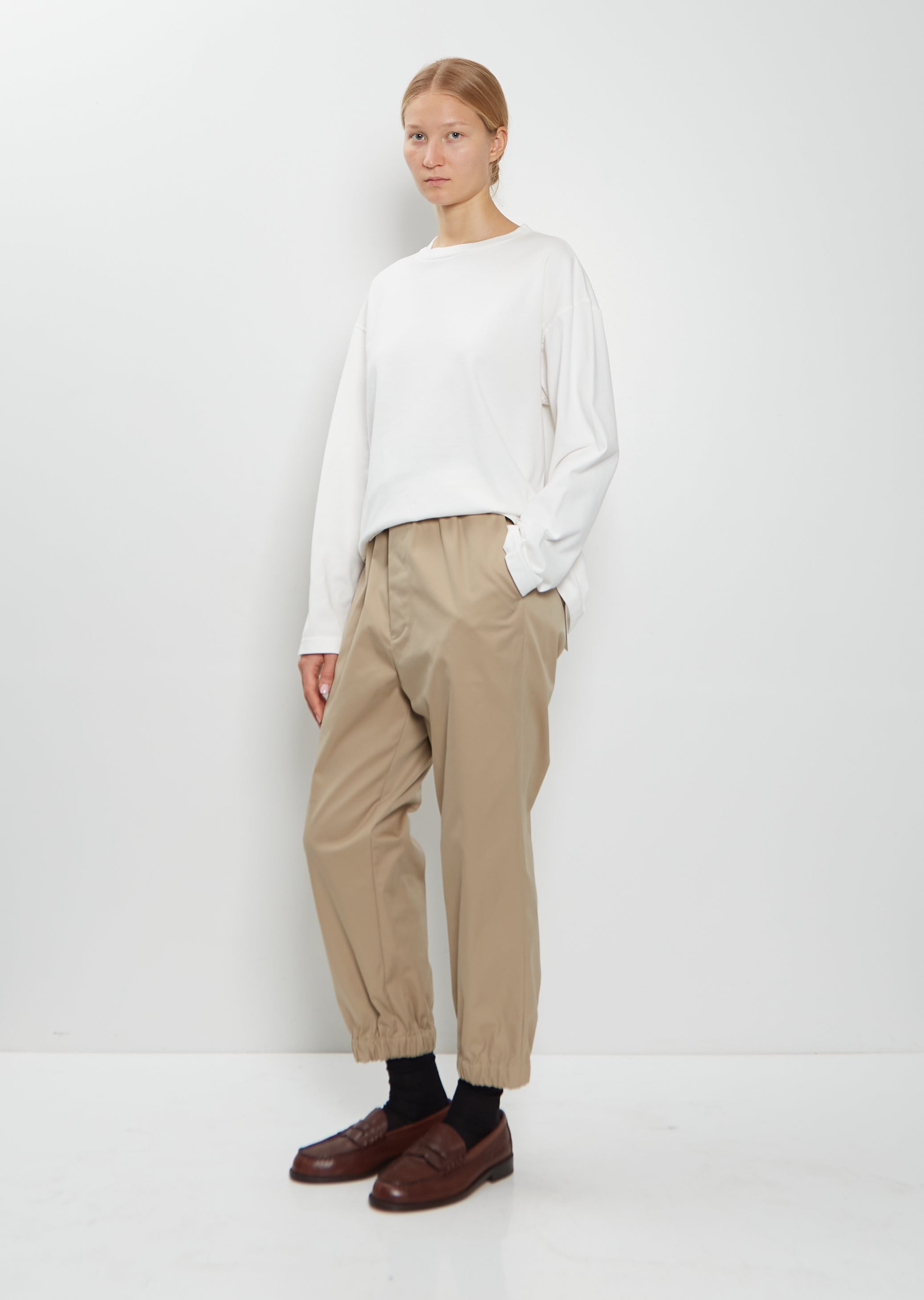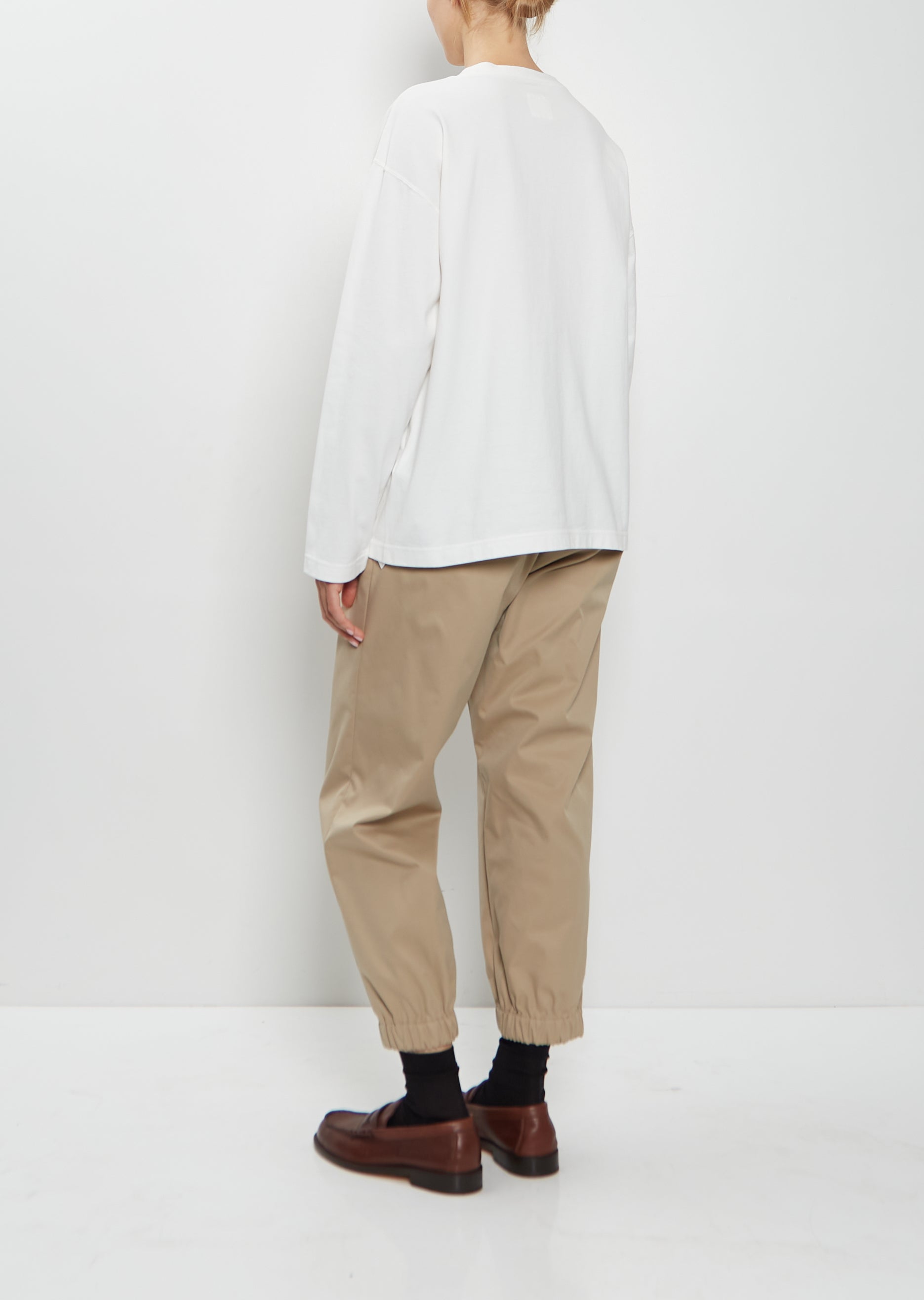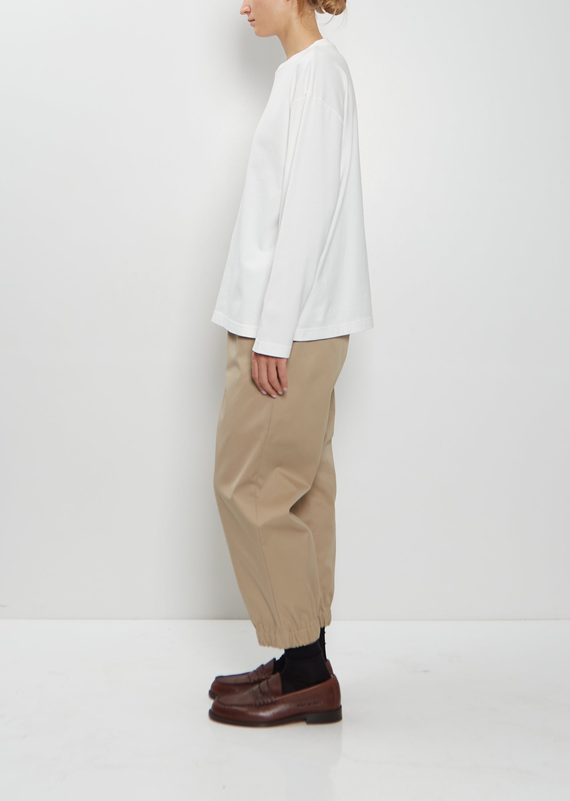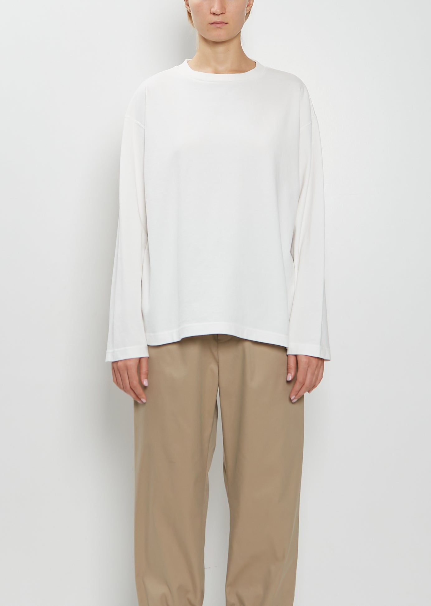 Toujours white long sleeve pullover with a crew neckline and dropped shoulders in a dense soft cotton jersey. Relaxed fit.