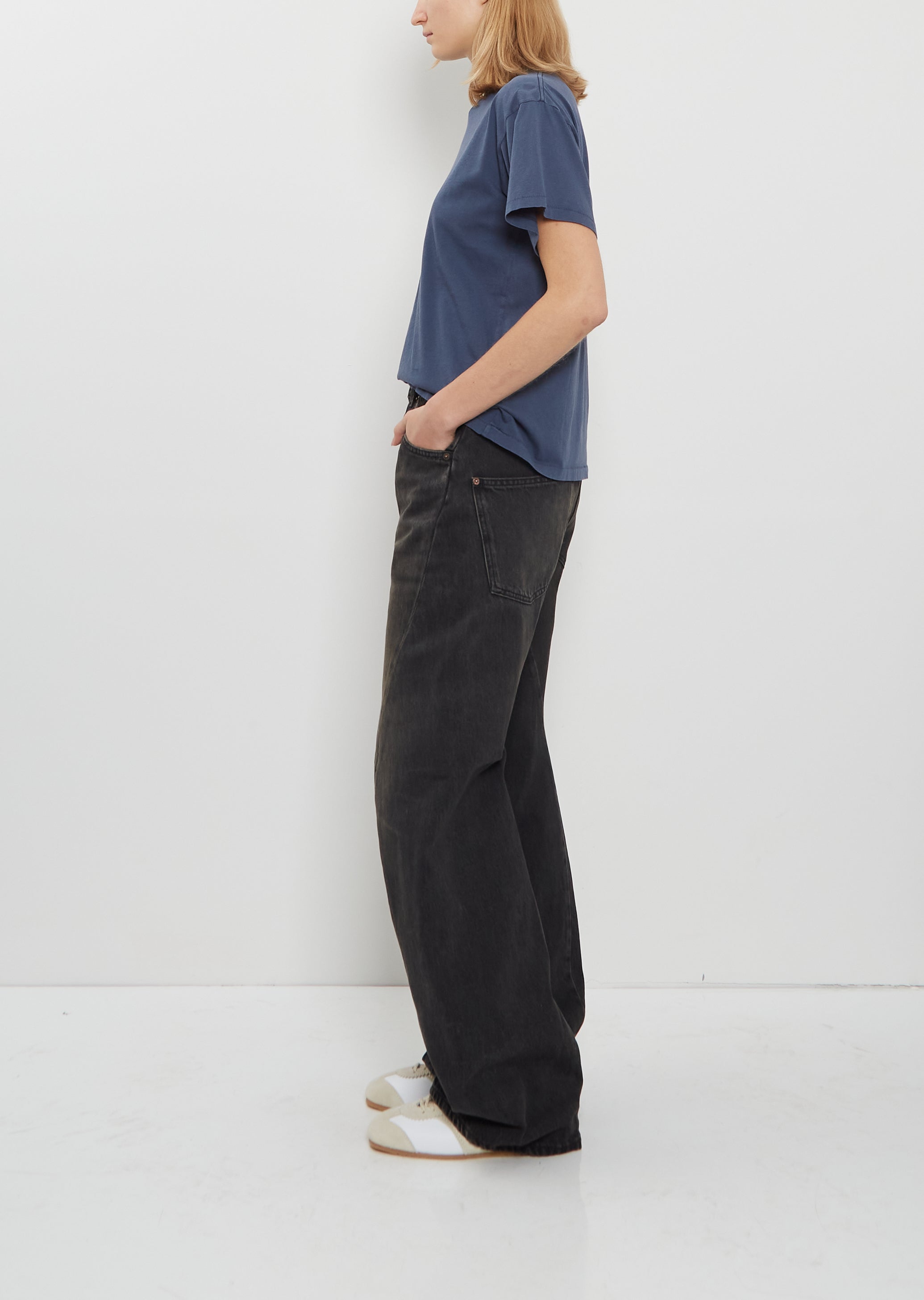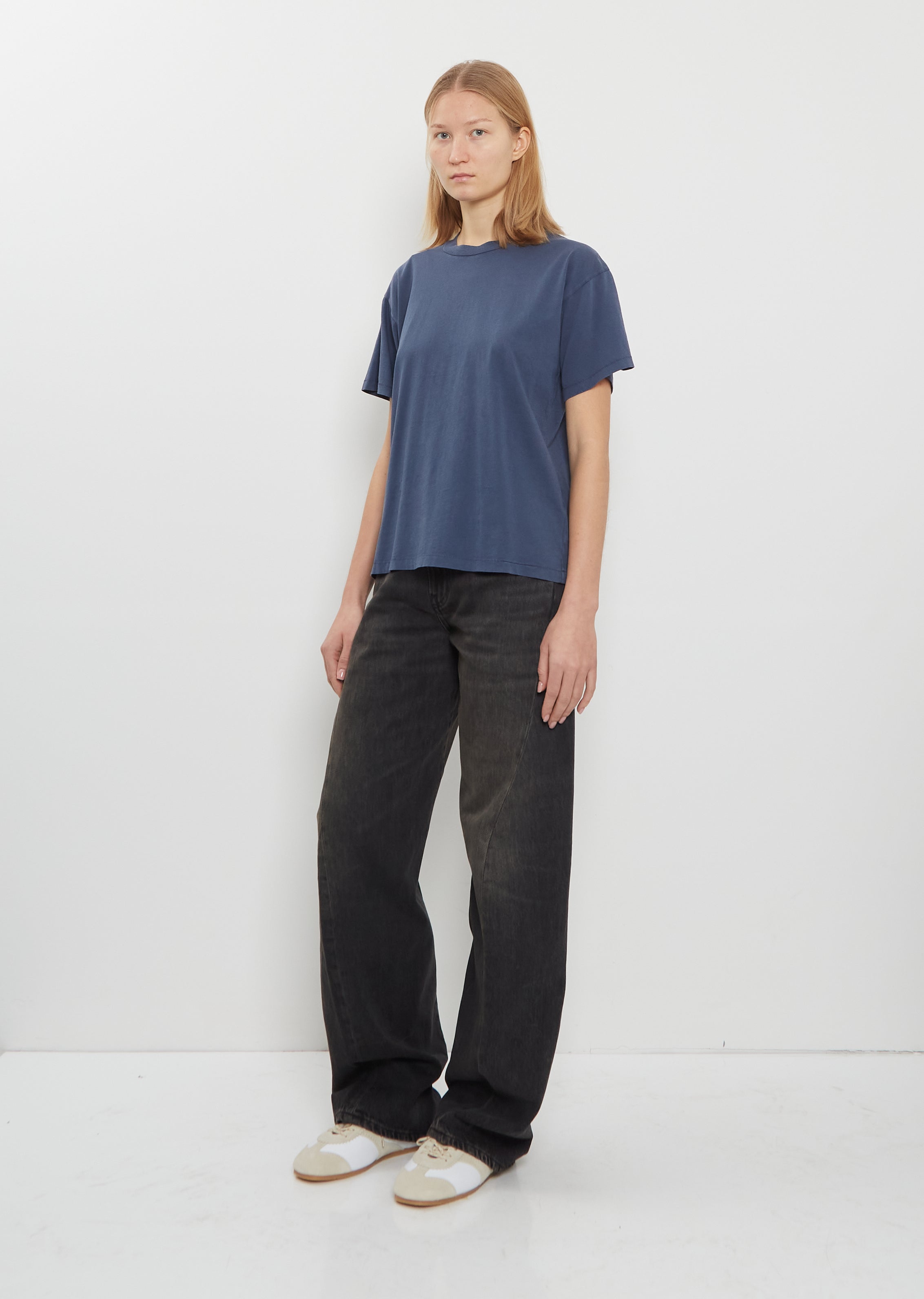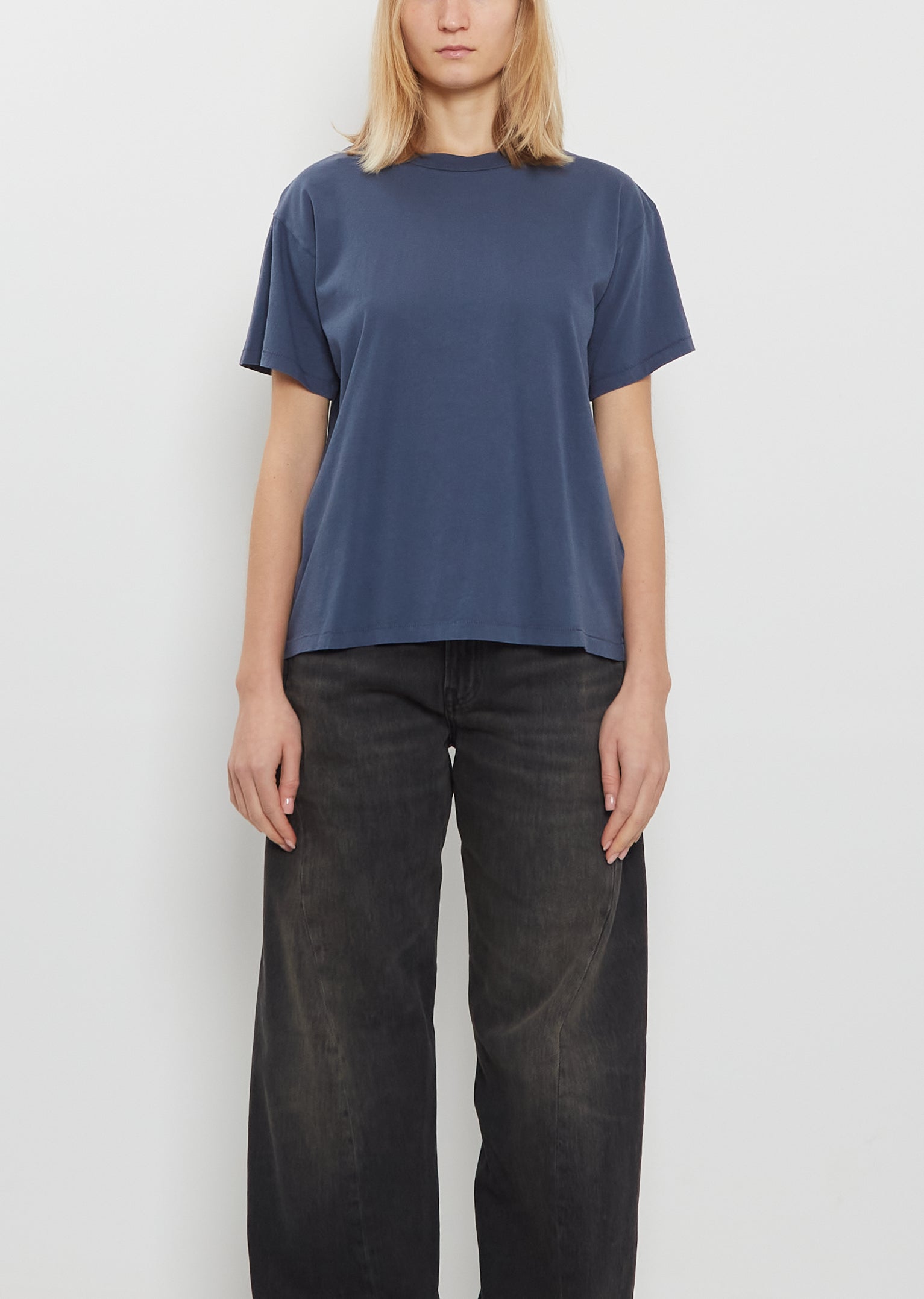 6397 navy signature short sleeve boy tee with a crew neck and slightly dropped shoulders in a soft and lightweight pima cotton with a washed finish. Straight cut with a relaxed fit.