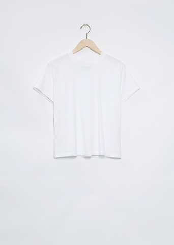 Studio Nicholson signature white cotton t-shirt in a compact cotton with a screen-printed logo at the nape of the neck.