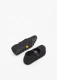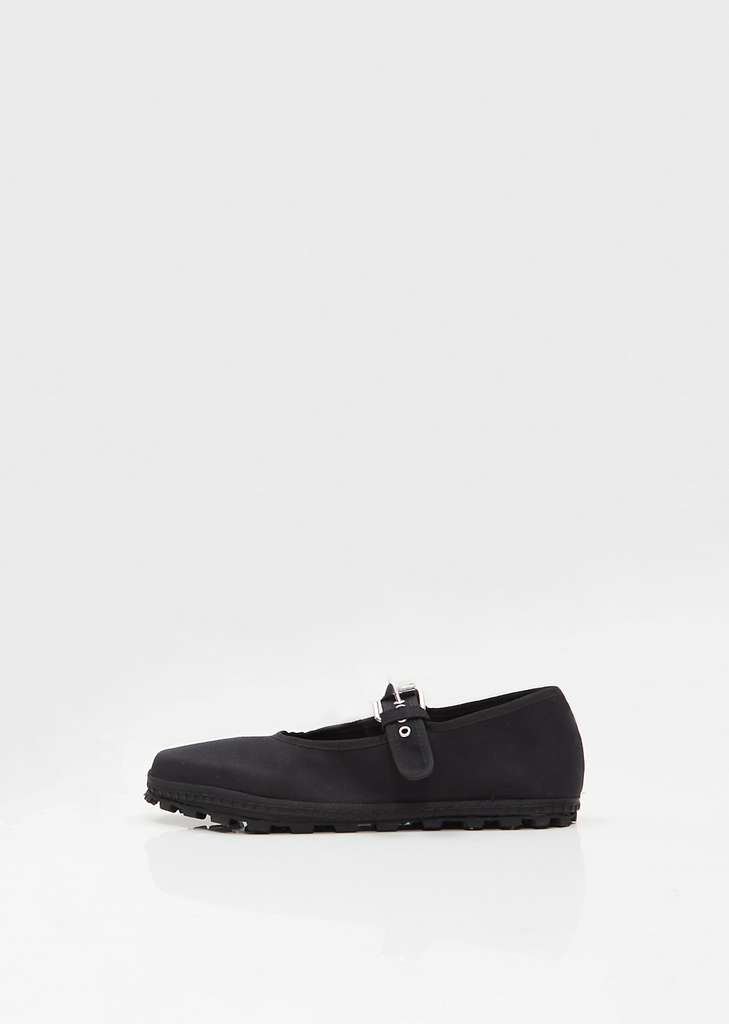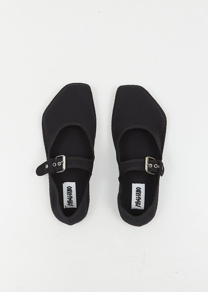 Magliano black mary jane slipper with a rounded toe in cotton canvas. Finished with a Vibram rubber treaded sole and silver-toned hardware.